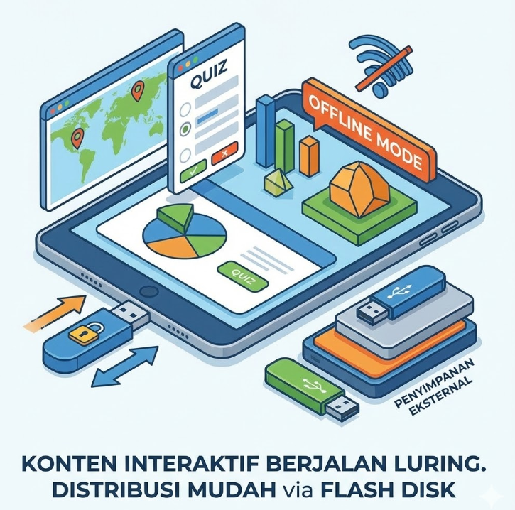 Konten interaktif dapat berjalan dengan baik secara offline. Dapat didistribusikan melalui penyimpanan eksternal seperti flashdisk